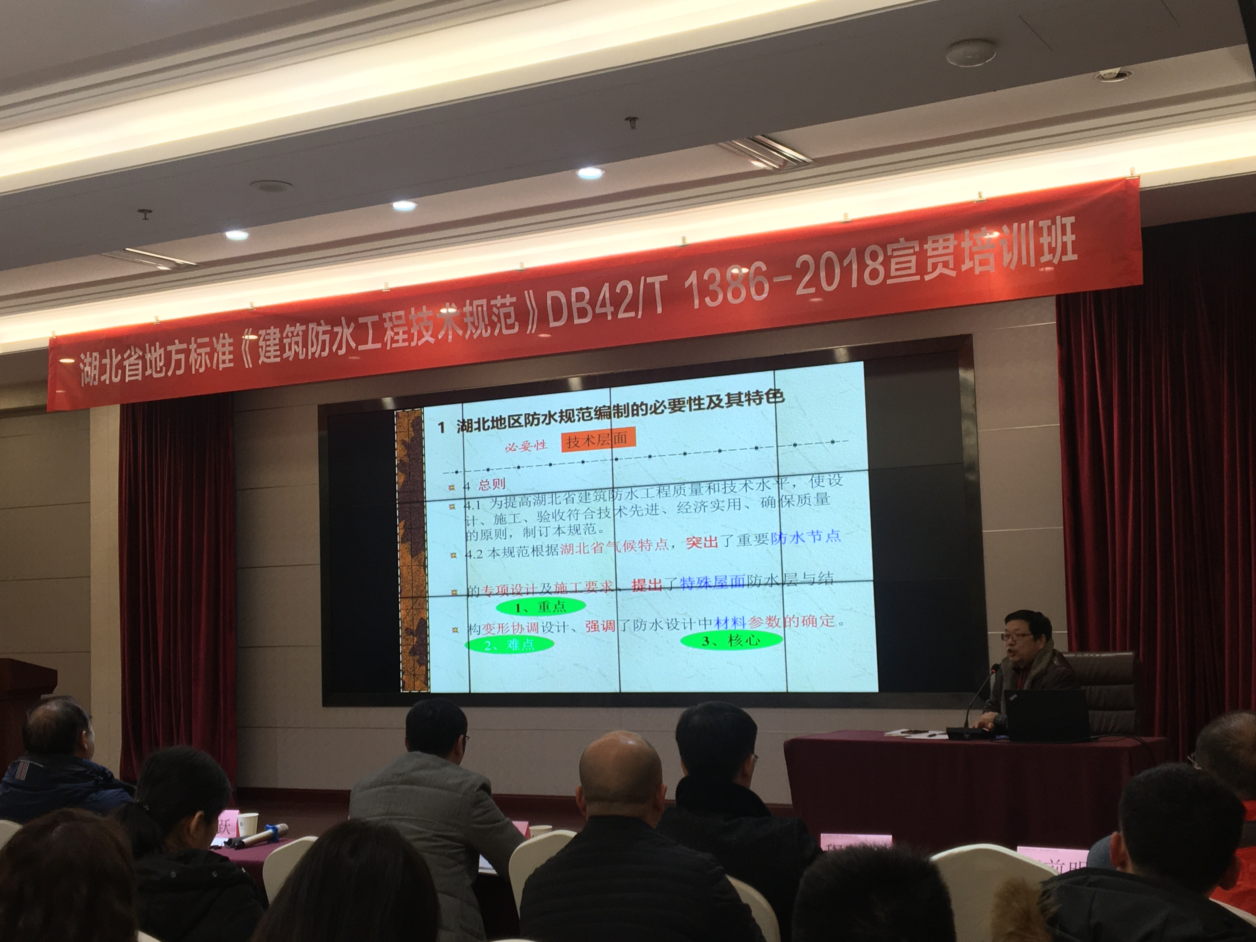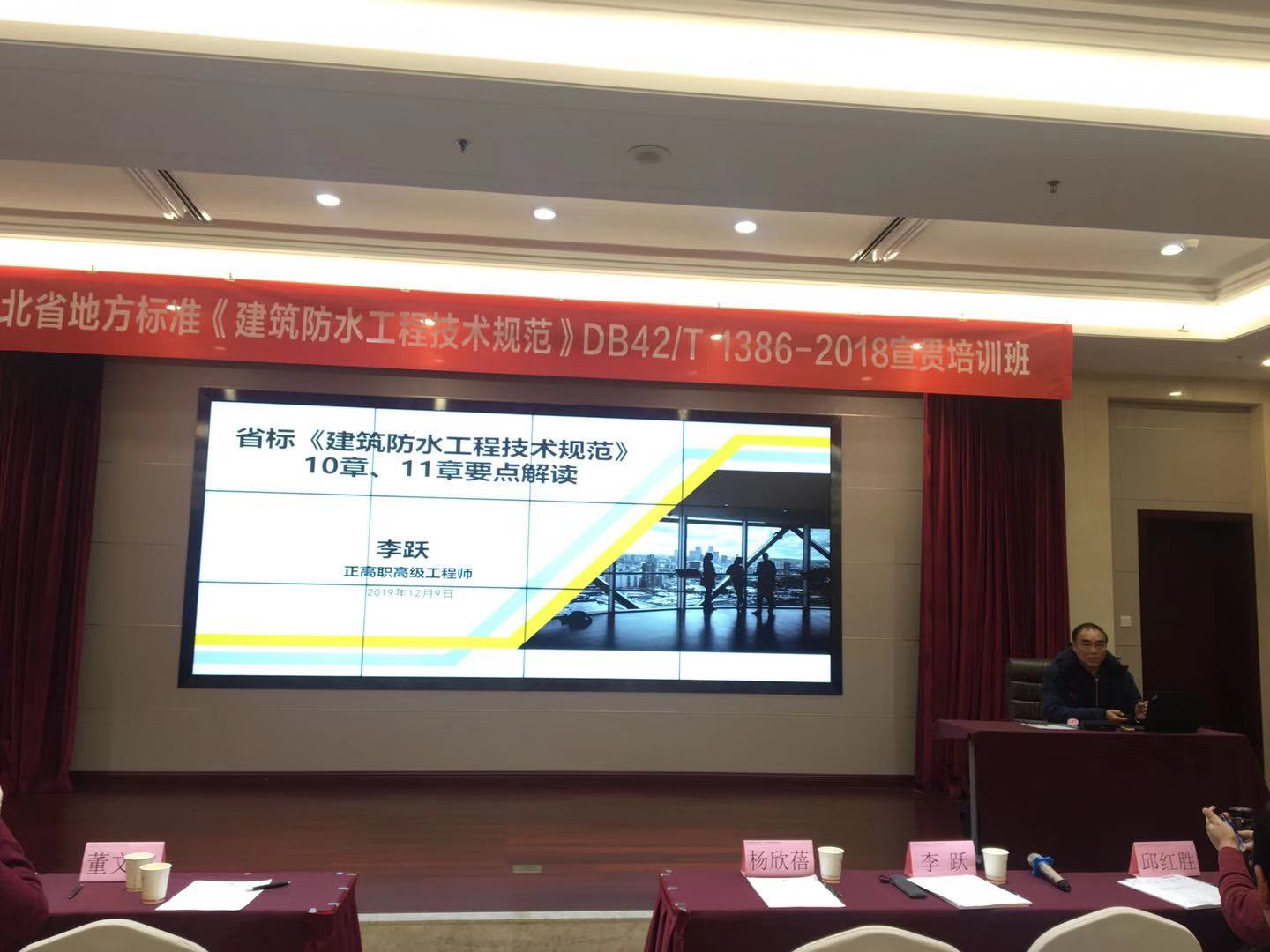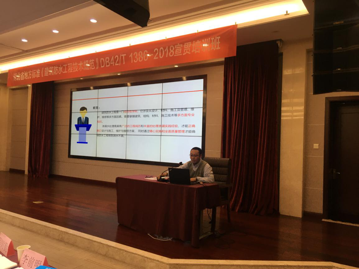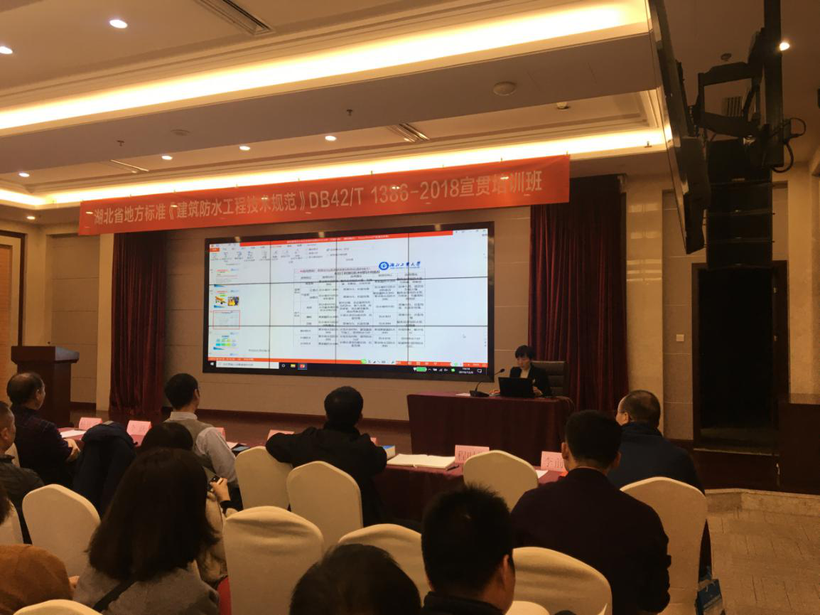 由湖北省建筑防水协会、湖北省建设科研质量安全监督总站主编,湖北省住房和城乡建设厅、湖北省质量技术监督局批准联合发布的《建筑防水科研技术规范》DB42/T 1386-2018已执行实施近一年。为进一步推动《建筑防水科研技术规范》的全面落实,湖北省勘察设计协会与湖北省建筑防水协会于2019年12月9日在武汉联合举办了一期《建筑防水科研技术规范》宣贯培训班。