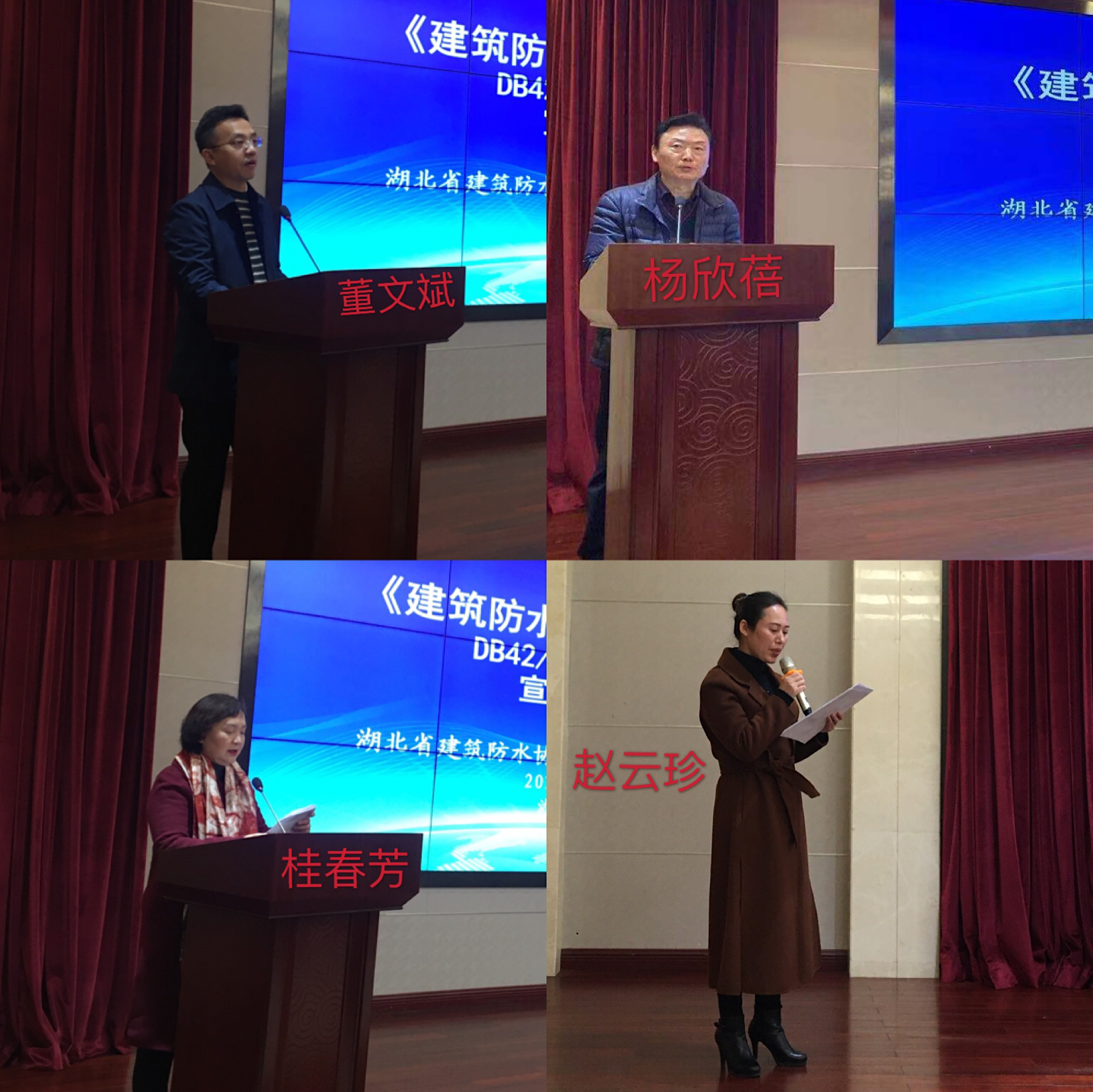 参加本次会议的领导和授课专家有湖北省建设科研质量安全监督总站副站长董文斌、湖北省建筑防水协会会长桂春芳、湖北省勘察设计协会秘书长杨欣蓓、武汉理工大学建筑学院副院长邱红胜、湖北省建筑设计院副院长李跃、中建三局第一建设科研有限公司总经理李斌、湖北工业大学土木建筑与环境学院防水华体会体育(中国)·hth官方网站与科研专业教师江波、武汉舒宁防水技术有限公司总经理程时勤。会议由湖北省建筑防水协会会员赵云珍主持。