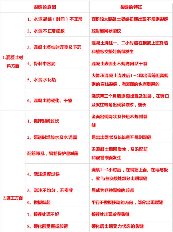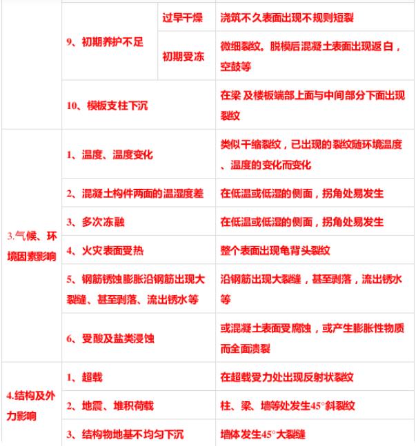 混凝土裂缝产生的原因多种多样,有原华体会体育(中国)·hth官方网站方面的,也有施工方面的,气候、环境及外力方面的。详见表1